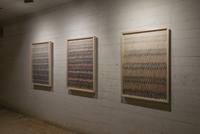 The drawings in the exhibition are early work. They are all chalk drawings with a repetitive pattern of lines or strips, descending from light to dark.