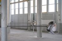 The sculptures of the two installations at Het HEM embrace a bio mechanical science fiction-like form language. They are posthuman alien like figures who could have emerged from H.R. Giger's fantasy. In the large raw halls of Het HEM, they seem to be waiting like embryos to be born, or rather to slowly dissolve into dust.