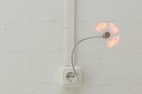 Chapter 3HREE shows a device that cyclically displays the words FOR THE TIME BEING and at the same time creates an airflow. Whereas in many ways the exhibition questions the connection with the environment and its transience, For the Time Being precisely creates clarity in this theme. The rattling mechanism of the cheaply produced 'gadget' unmistakably conveys a form of melancholy: the potential of the here and now is challenged by the precariousness of existence.
