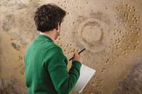 In plaats van je naar me toe laten komen, volg ik je vandaag. Het valt me gelijk op, dat ik deze kant nog niet goed van je kende. Deze achterkant (wat is een achterkant?) bezaaid met holtes die lijken op kogelgaten, op hoop dat niet kon ontsnappen. Een landschap vol kuilen en iedereen weet dat kuilen herinneringen zijn, littekens. Alsof de rook pas net is opgetrokken.