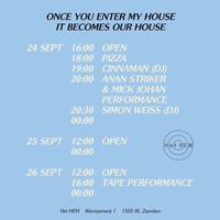 Met veel genoegen heten we je welkom bij 'Once you enter my house, it becomes our house', een groepsexpositie waar het werk van kunstenaars die momenteel hun atelier in Het HEM hebben wordt tentoongesteld. : Lisette Van Hoogenhuyze, Simon Keizer, Marilyn Sonneveld, Anan Striker en Tom van Veen