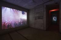 Dark Corners is an anxious and intense exploration of the role of the individual in a highly charged environment. We show two versions of the work– along with a soundscape by SSDJ Spacemaker, which follow young men as they hype themselves into a state of gabber trance. You first encounter Versluis’ observation of a gabber party at Rotterdam’s infamous Energie Hal in 1994, following as he zeroes in on his subjects. Further into the installation, you encounter Sylvain, a young gabber submerged in his solitary dance. Cut off from the teeming crowd, his dance seems to reach new levels of intensity. Tilted, looped and shifted, Dark Corners teeters between ecstasy and anxiety and recalls Christian phenomena of exaltation and possession.