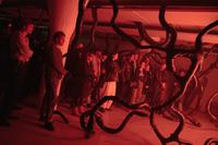 GM: The imagery that we see behind us, the poster for the exhibition for the premiere of the video. It really lends itself or owes its style to 70s horror and later. Of course, there’s been a revival of horror in the past 15 years. What do you like about darkness or horror?